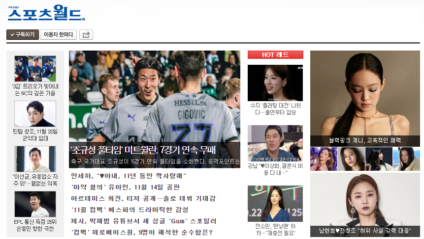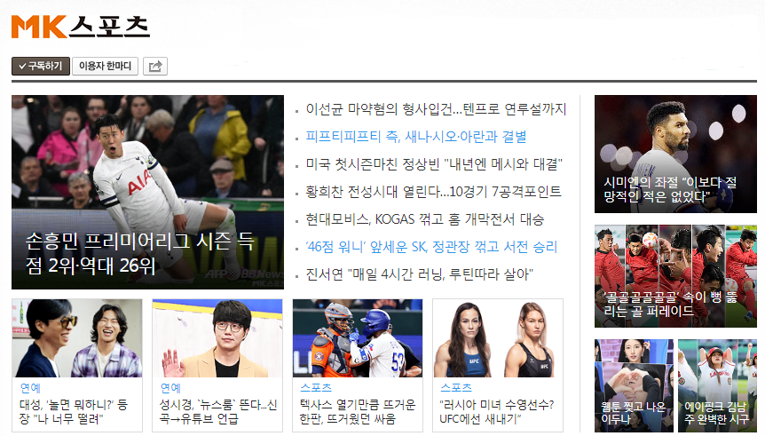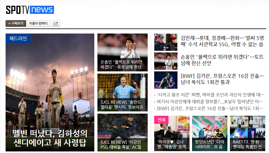 그중에서도 스포츠 뉴스 기사 내용을 실시간으로 확인하고