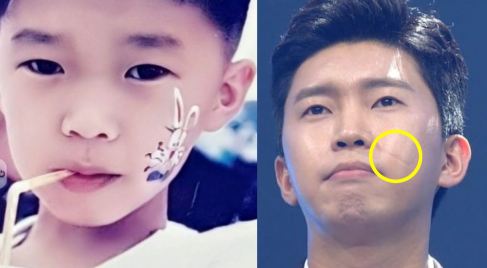 임영웅은 얼굴 광대 쪽에 큰 흉터를 가지고 있습니다.